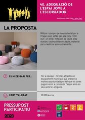 És necessari perquè...Per a equipar i fer més atractiu un equipament municipal que presenta moltes oportunitats, per tal que els joves puguin venir a compartir l’espai amb els seus amics i amigues.