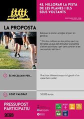 S'inclou millores en les pistes però no terratzo, ja que pot dificultar la pràctica d'altres activitats i per tant contrari a les necessitats del barri.
