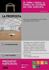 És necessari perquè...Aconseguir més comoditat a l'hora de fer activitats i actuacions…evitant el fang en dies de pluja i la pols els dies més secs. Gràcies al tendal s'evitaria l'exposició solar en moments de jocs i activitats infantils i d'altres que es facin durant el dia.
