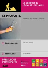 Començar a afegir projectes. Assigna com a mínim 190.000 € amb els projectes que vulguis i vota segons les teves preferències per a definir el pressupost.