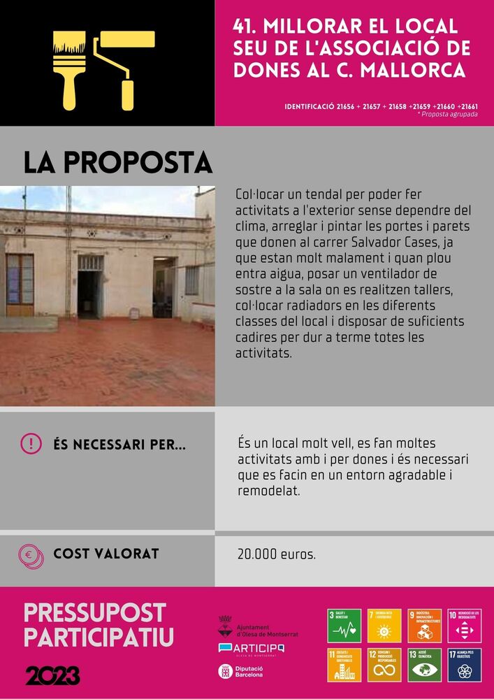 41.- Millorar el local seu de l'associació de dones al c. Mallorca