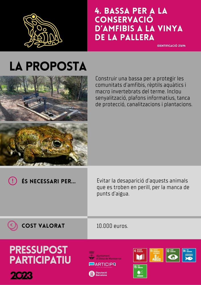 4.- Bassa per a la conservació d’amfibis a la Vinya de la Pallera