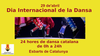 24 hores seguides de dansa catalana, tradicional i d'arrel. Els esbarts de Catalunya ens afegim a la celebració confinada del Dia Internacional de la Dansa. En aquest enllaç a youtube, el dia 29 d'abril, des de les 00:00 fins a les 24:00 es pot veure, de forma continuada, esbarts ballant i ballant. https://www.youtube.com/watch?v=7GGOLV9F7cM&feature=youtu.be També trobareu aquest enllaç al web: www.esbarts.cat/noticies. http://www.esbarts.cat/noticies/29-dabril-dia-internacional-de-la-dansa