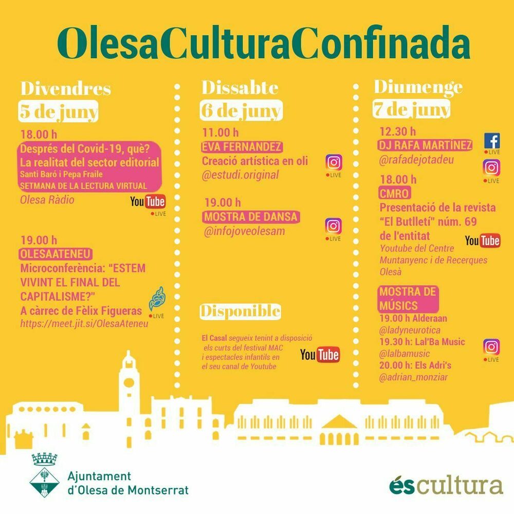 Aquest divendres arrenca una nova edició del cicle Olesa Cultura Confinada, la vuitena, que inclou novetats com ara unes mostra de dansa i una de músics.