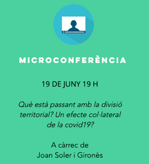 𝙰𝚚𝚞𝚎𝚜𝚝 𝚍𝚒𝚟𝚎𝚗𝚍𝚛𝚎𝚜, 𝟷𝟿 𝚍𝚎 𝚓𝚞𝚗𝚢, 𝚗𝚘𝚟𝚊 m𝚒𝚌𝚛𝚘𝚌𝚘𝚗𝚏𝚎𝚛è𝚗𝚌𝚒𝚊 "Què està passant amb la divisió territorial? Un efecte colateral de la covid 19" a càrrec de Joan Soler Gironès.